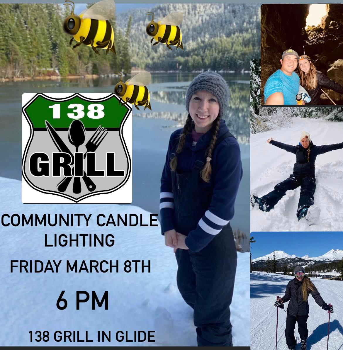 There will be a community based candle lighting this Friday night, March 8 at 6pm at 138 Grill in Glide to support Rachel‘s family. Rachel has been missing since Friday March 1st, when her pickup truck was found in the North Umpqua River east of Glide. The search for Rachel has been ongoing. Here is the full announcement about this Friday's candle lighting from Molly Roy: "✨🐝With Haos wishes we planned a community based candle lighting. PLEASE SHARE and join us with Rachel’s family to honor our angel🐝✨ ✨🐝FRIENDS, FAMILY, & ALL LOVED ONES OF MRS. RACHEL LY🐝✨ There is a COMMUNITY based candle lighting in honor of Rachel, her family, & every little life she touched in our community. Her husband Hao feels honored to have the community behind him. This candle lighting is being held at 138 Grill in Glide. We will gather at 6pm FRIDAY MARCH 8th. ✨CANDLES WILL BE PROVIDED✨ 🐝A bumble bee themed donation box will be passed around to honor her loved ones. 138 Grill will also have a donation jar in the restaurant the entire day on Friday🐝 Please share to spread the word." If anyone has questions about this lighting event, you can reach Molly Roy at: mollymroy@live.com For anyone who would like to support Rachel's family, you can do so here: https://www.gofundme.com/f/donate-in-memory-of-rachel-merchantly