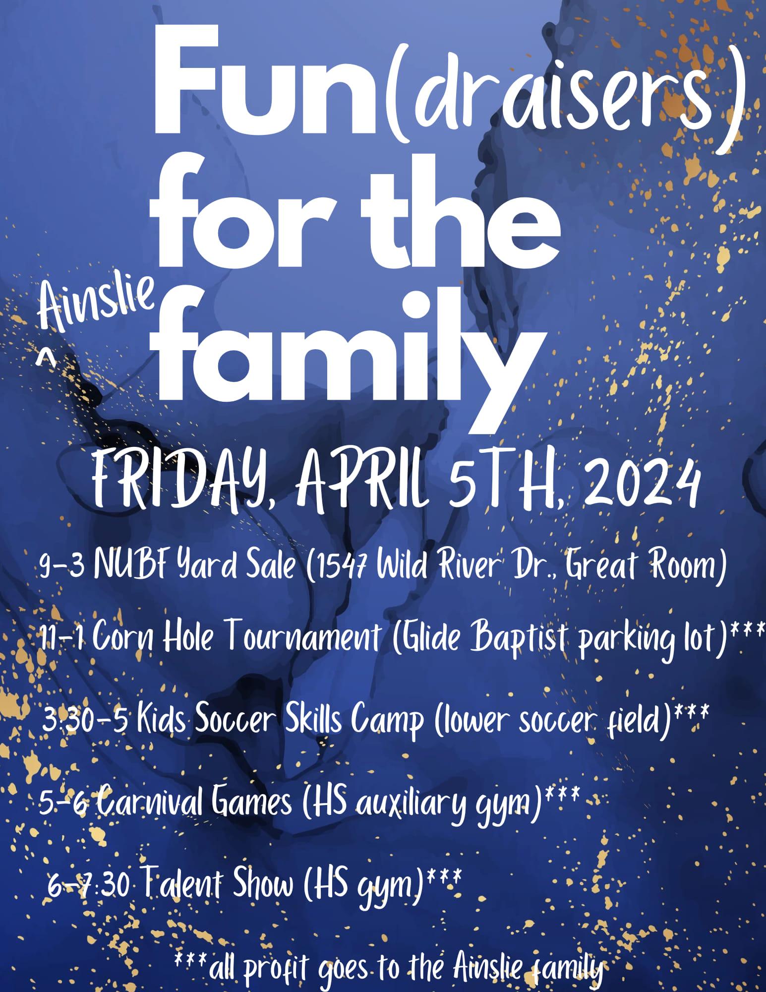 This Friday, the Glide community is coming together to support Kelden Ainslie and his family through various fundraising events, as they face challenges and medical expenses following a devastating car accident caused by an impaired driver. The following is from a post from North Umpqua Bible Fellowship about the events and more backstory about what Kelden Ainslie and his family are going through. "This past October, Kelden Ainslie, a 2023 graduate of Glide High School, was hit head-on by an impaired driver. He had to be revived at the scene and life-flighted. After multiple life-saving brain surgeries and other operations, he still has a long road to recovery. In February he started becoming aware of what was going on, and has started to make more improvements since then. Kelden and his dad are currently in Colorado for Kelden's treatment/therapy, but expected to be back in early April after he has a custom wheelchair that meets his specific needs. There will be a lot of continued treatments and rehab when they return. As you can imagine, they have accumulated some hefty medical bills. It is our hope to ease some of the burden for this family by drawing people into our community for a day of fun, fundraiser events. In an effort to raise as much money as we can for the Ainslie family, many people have stepped up to the plate to help put on fundraisers. The fundraisers are all on the same day, making it more worthwhile for those with a bit longer of a drive. Know somebody that would enjoy the events or the opportunity to help the family? Share it with them. Have some spare time that day and want someone to put you to work? Let us know. Have a dessert you want to make for a silent auction, or a raffle basket you could put together easily? Message us. (INFO@NUBF.ORG or (541) 496-0764 of via FB page https://www.facebook.com/NUBF_Glide) You can find fliers for each event in the comments of the original post. By going to our page you can find additional information for each event." Via North Umpqua Bible Fellowship